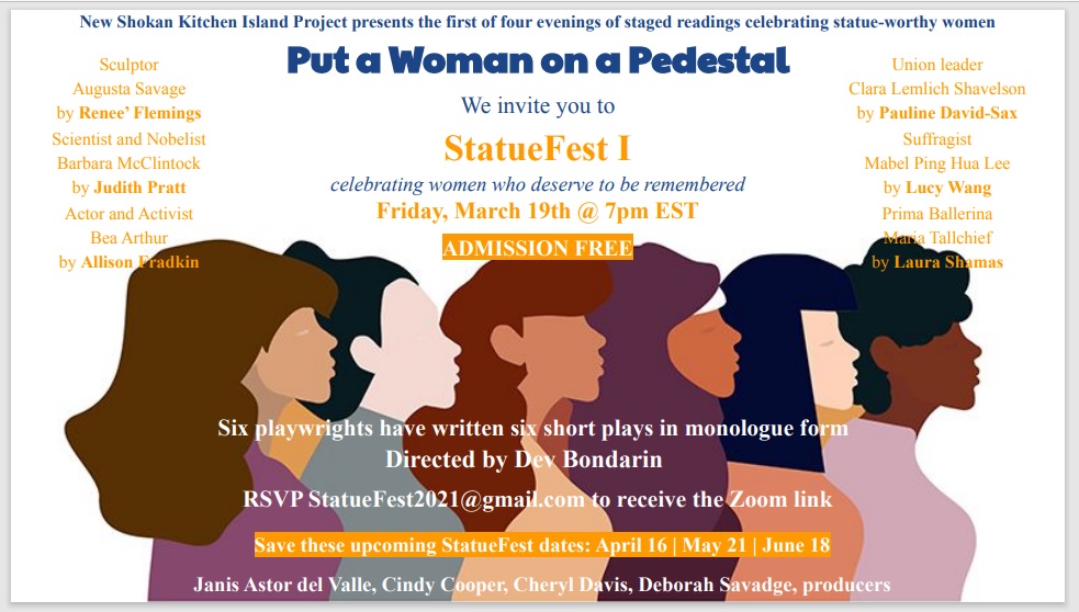 StatueFest I —– Program March 19, 2021 7pm EST Zoom Posted byprochoicetheater10/23/202003/18/2021Posted inUncategorized Download the program for StatueFest I below! StatueFest I PlaybillDownload RSVP or Questions statuefest2021@gmail.com Related Published by prochoicetheater Words of Choice Inc. is a nonprofit social justice and activist arts organization. Words of Choice takes uses language, theater, arts and workshops to create new discussions about reproductive freedom. View more posts